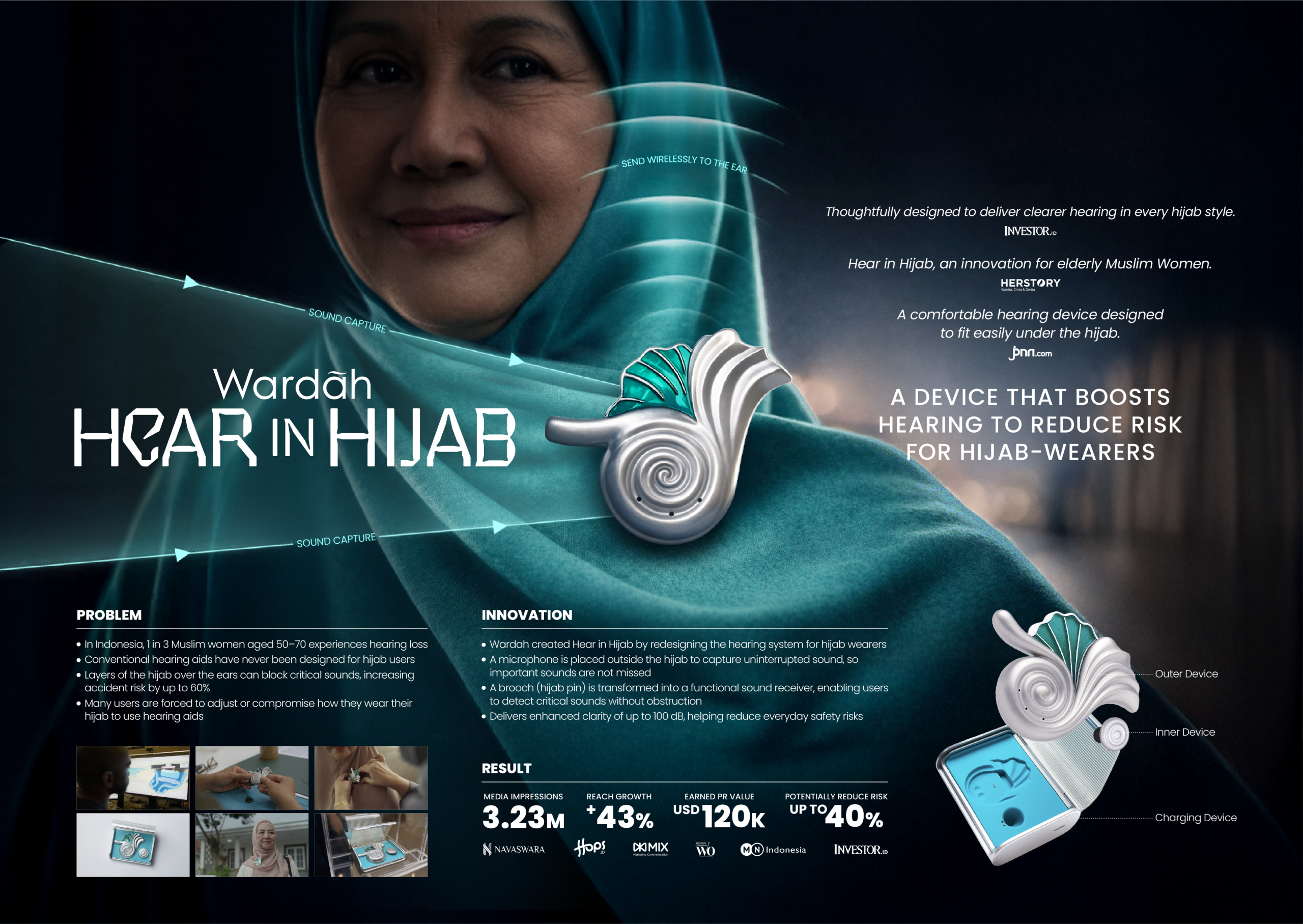 Wardah identified that conventional hearing aids are often impractical for hijab-wearing women, causing many to stop using them. Hear in Hijab restores hearing clarity, confidence, and independence without requiring women to alter how they dress or practice their faith.